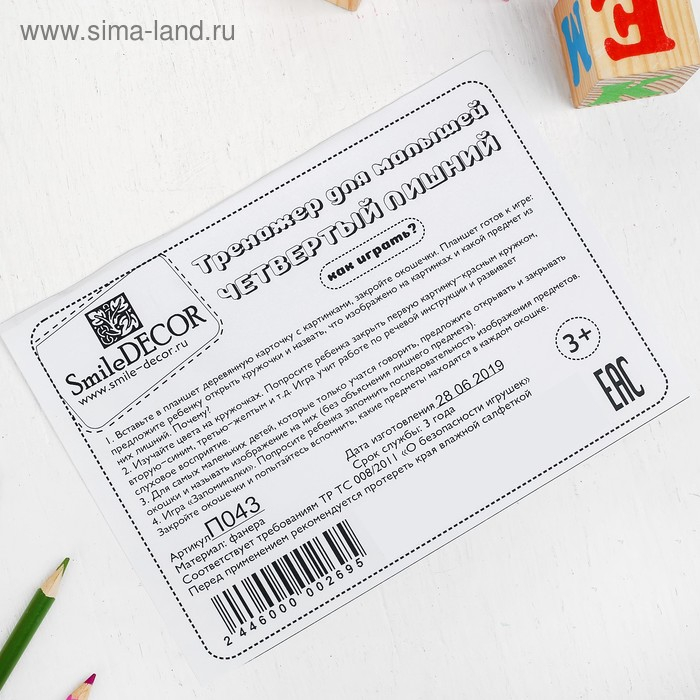 Развивающая игра «Четвертый лишний» 8 плашек с рисунками