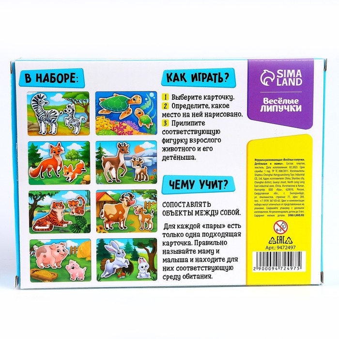 Развивающая игра на липучках «Изучаем животных. Мамы и малыши»