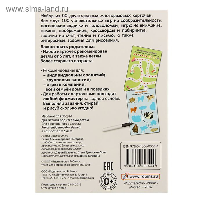 Развивающие карточки «100 игр на сообразительность», 50 карточек + маркер