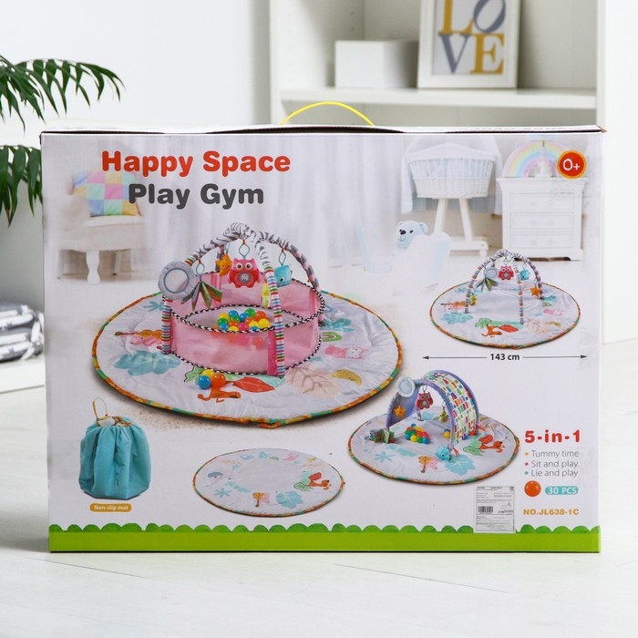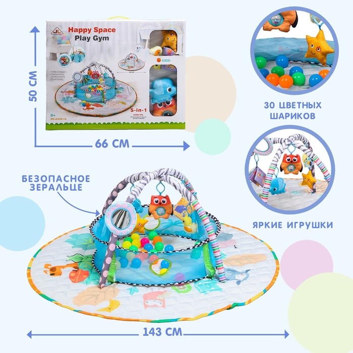 Развивающий игровой набор 5 в 1 «Коврик-мешок и игровой центр», 30 шаров, 83х71х0,5 см.