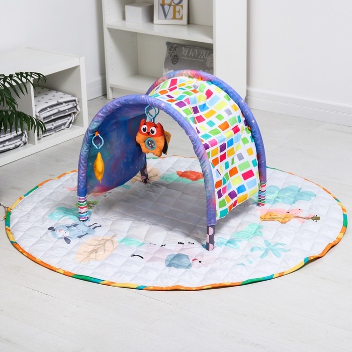 играем с ковриком. Когда малыш научится сидеть, дуги можно будет снять и далее использовать коврик как пространство для игр. Коврик можно выносить с собой на природу, брать на дачу и использвать как безопасное место для игр с различными игрушками.