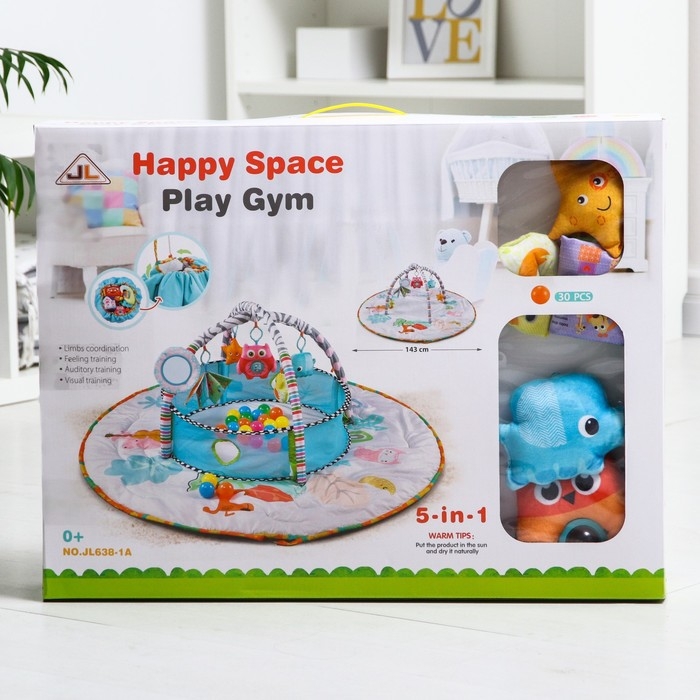 Малыш играет на спинке лёжа. На самом раннем этапе своего развития малыш тянется за яркими, притягивающими внимание игрушками и учится их хватать, так же малыш видит свое отражение в безопасном зеркальце и улыбается. В комплекте с ковриком прилагаются подвесные игрушки, яркие и привлекательные, они служат для развития тактильных ощущений и зрения.