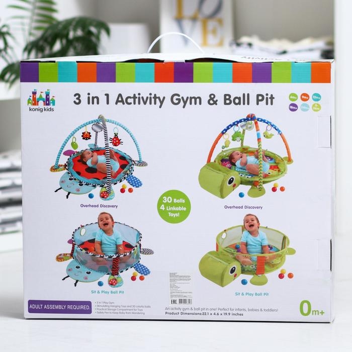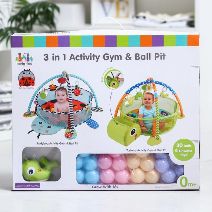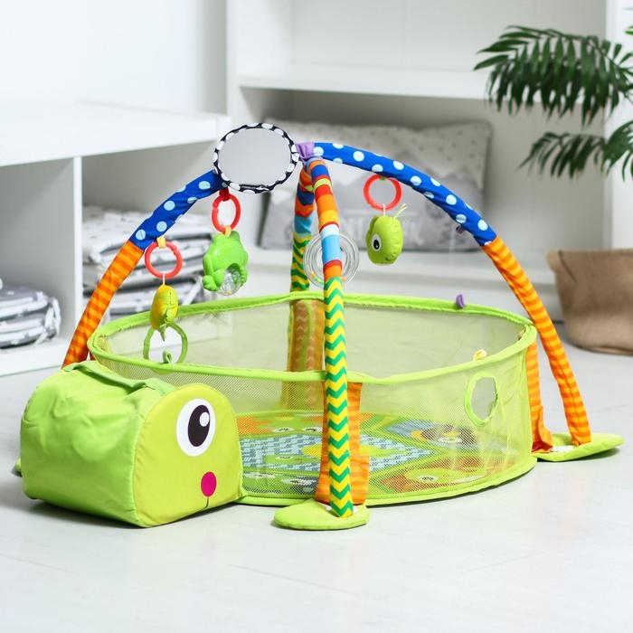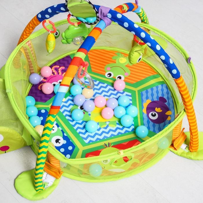 Развивающий коврик 3 в 1 «Черепаха», 30 цветных шариков, 4 игрушки