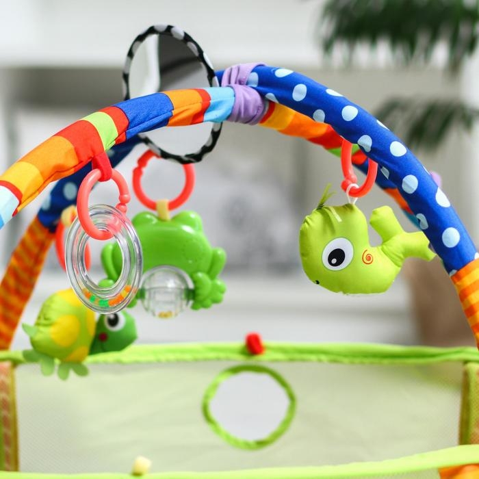 играем с ковриком. Когда малыш научится сидеть, дуги можно будет снять и далее использовать коврик как пространство для игр. Коврик можно выносить с собой на природу, брать на дачу и использвать как безопасное место для игр с различными игрушками.