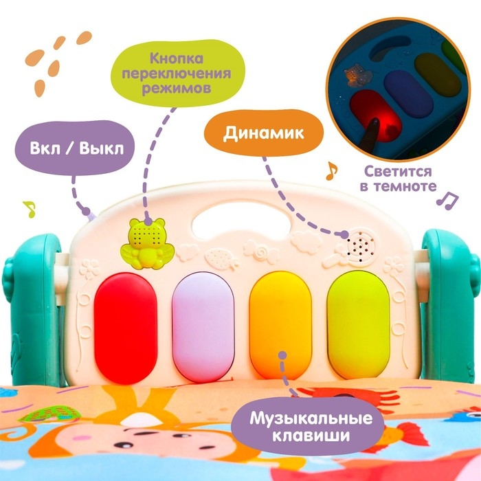 Постепенно малыш сможет наступать на клавиши пианино ножками и включать музыку и световые эффекты.