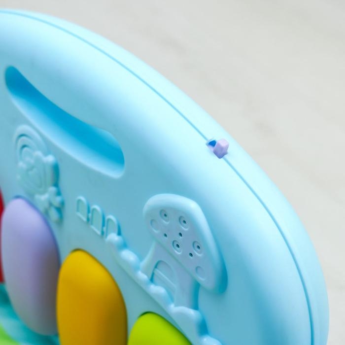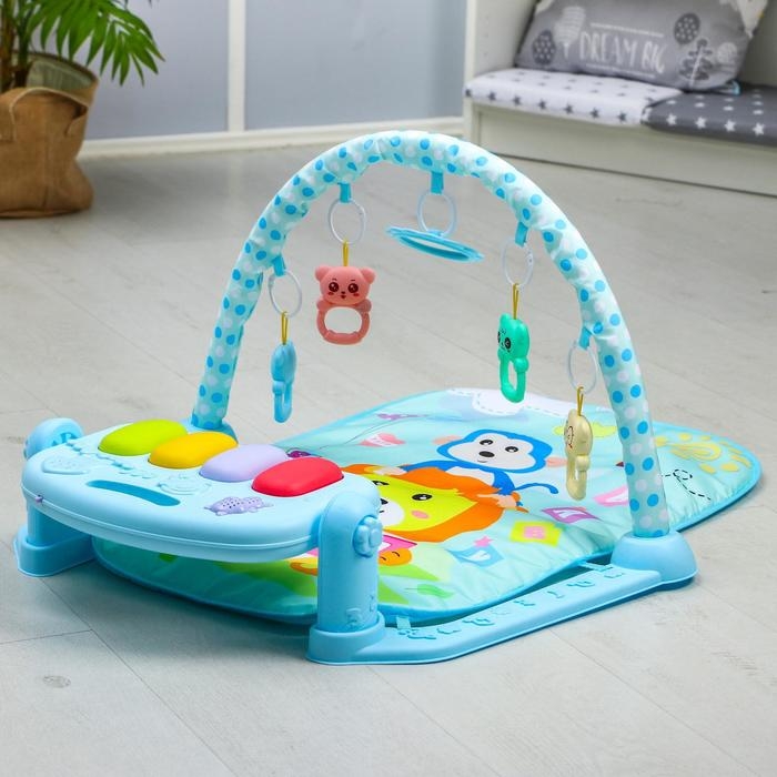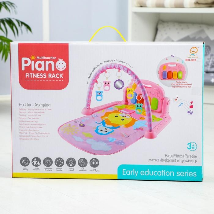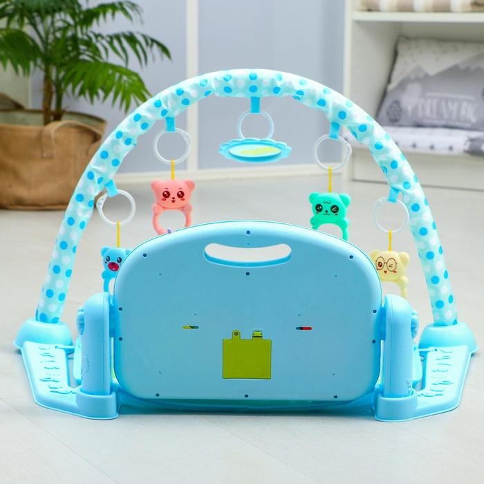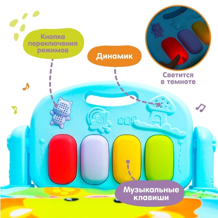 Сначала кроха, лёжа на спинке, будет просто с интересом разглядывать яркие игрушки на дуге, развивая зрительные навыки и способность фокусировать взгляд на объекте. Со временем он начнёт тянуться к этим привлекательным игрушкам ручками и ножками, совершенствуя хватательный рефлекс и двигательные функции. Постепенно малыш сможет наступать на клавиши пианино ножками и включать музыку и световые эффекты.