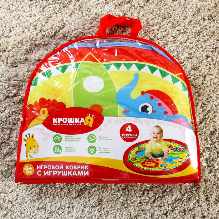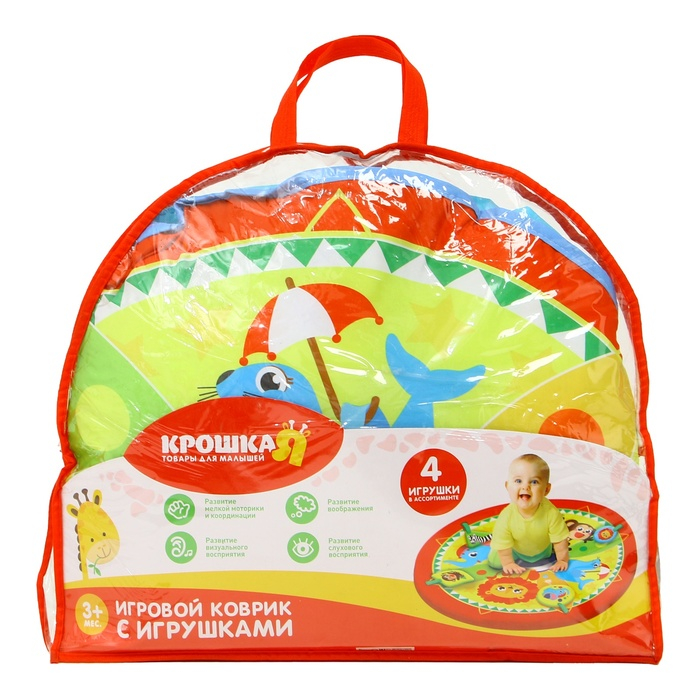 Развивающий коврик «Мягкие малыши», 4 мягкие игрушки, d80см, виды МИКС, Крошка Я
