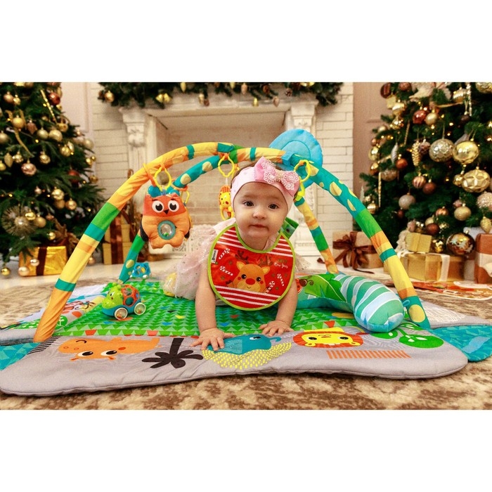 играем с ковриком. Когда малыш научится сидеть, дуги можно будет снять и далее использовать коврик как пространство для игр. Коврик можно выносить с собой на природу, брать на дачу и использвать как безопасное место для игр с различными игрушками.