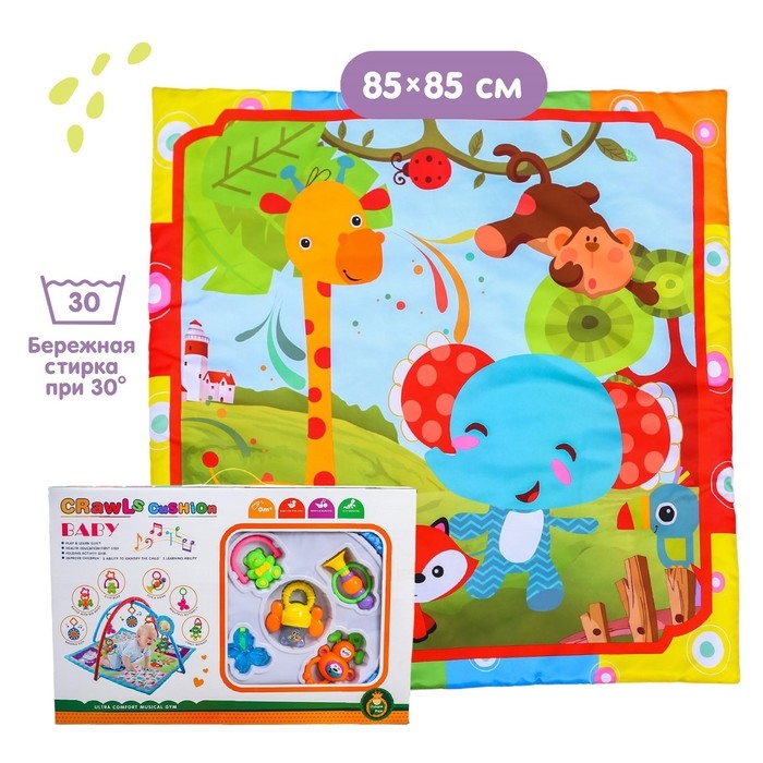 Уникальный, мягкий, развивающий коврик, с эластичным, безопасным зеркальцем, поможет занять малыша пока мама занимается домашними делами.