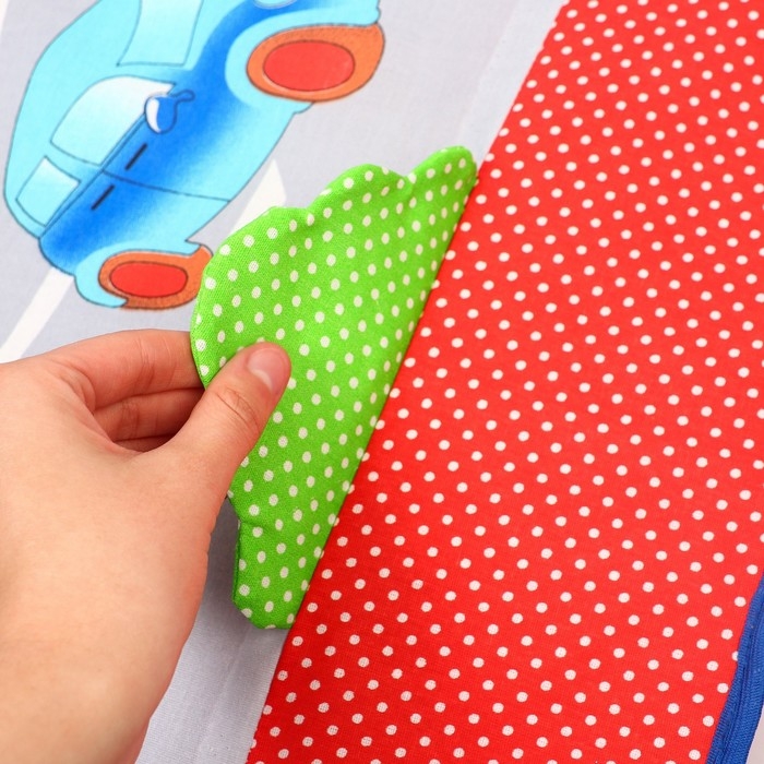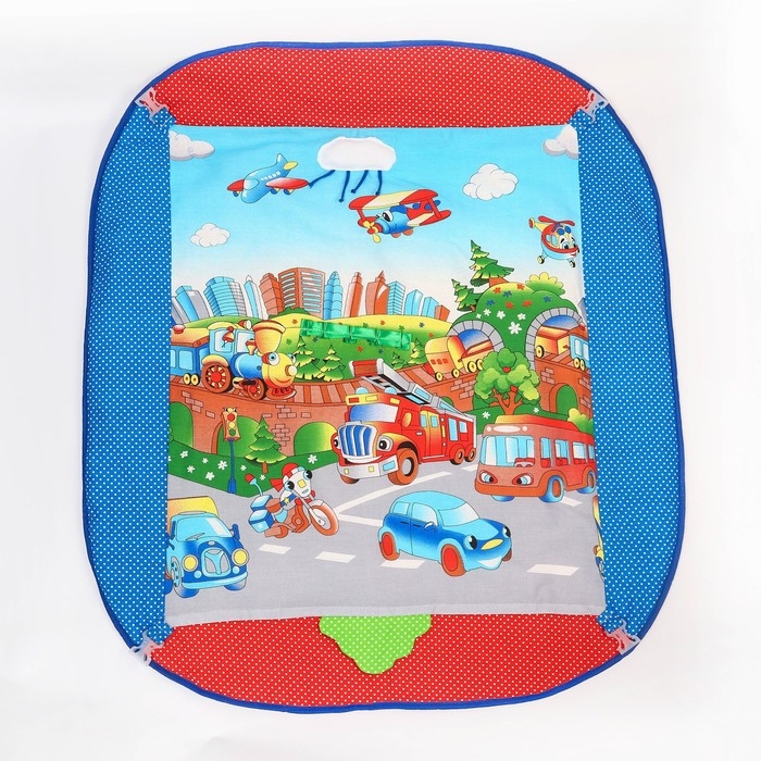- Коврик сделан из приятного на ощупь текстиля: малютке будет комфортно по нему ползать или делать первые шаги.