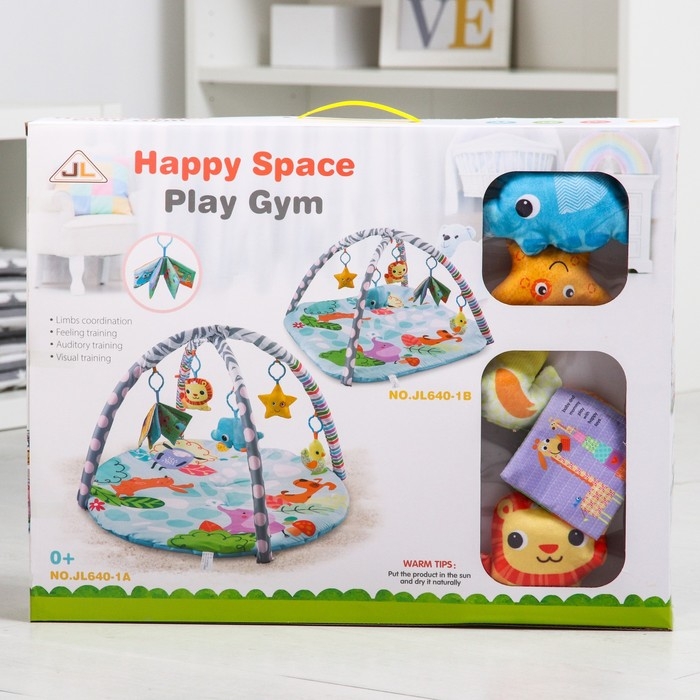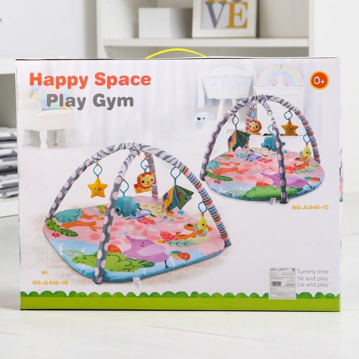 Малыш играет на спинке лёжа. На самом раннем этапе своего развития малыш тянется за яркими, притягивающими внимание игрушками и учится их хватать, так же малыш видит свое отражение в безопасном зеркальце и улыбается. В комплекте с ковриком прилагаются подвесные игрушки, яркие и привлекательные, они служат для развития тактильных ощущений и зрения.