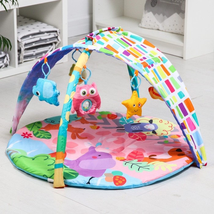 играем с ковриком. Когда малыш научится сидеть, дуги можно будет снять и далее использовать коврик как пространство для игр. Коврик можно выносить с собой на природу, брать на дачу и использвать как безопасное место для игр с различными игрушками.