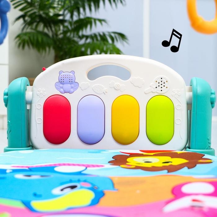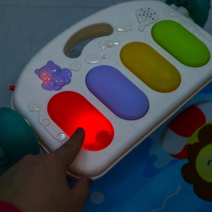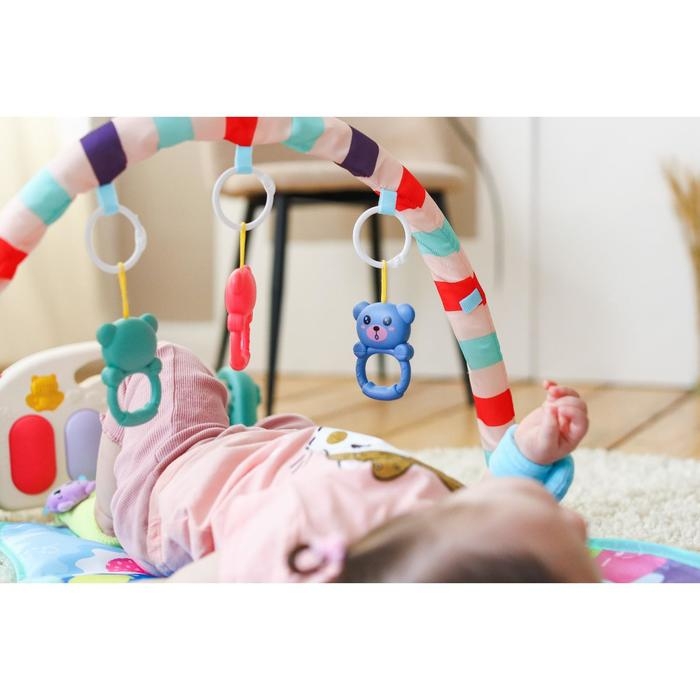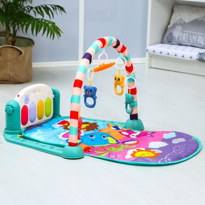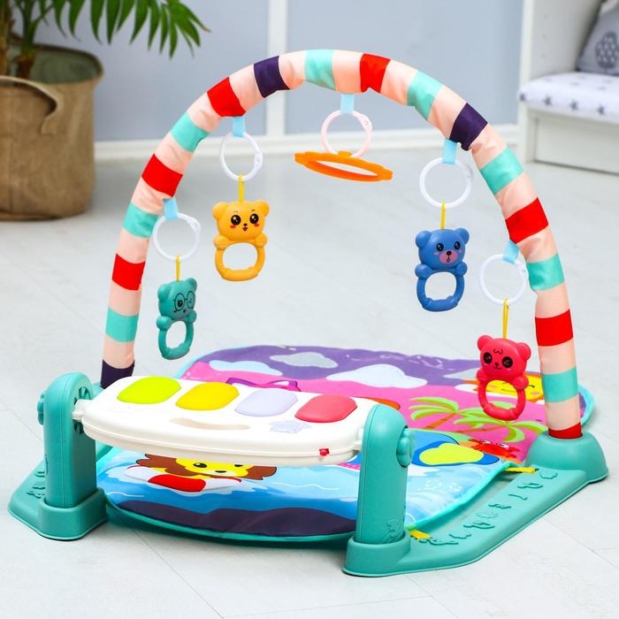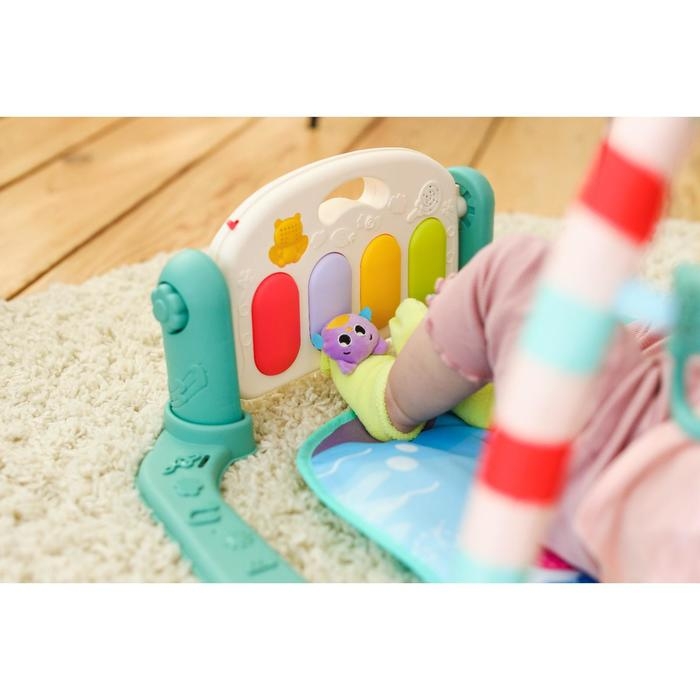 Сначала кроха, лёжа на спинке, будет просто с интересомразглядывать яркие игрушки на дуге, развивая зрительные навыки и способностьфокусировать взгляд на объекте. Со временем он начнёт тянуться к этимпривлекательным игрушкам ручками и ножками, совершенствуя хватательный рефлекси двигательные функции. Постепенно малыш сможет наступать на клавиши пианиноножками и включать музыку и световые эффекты.