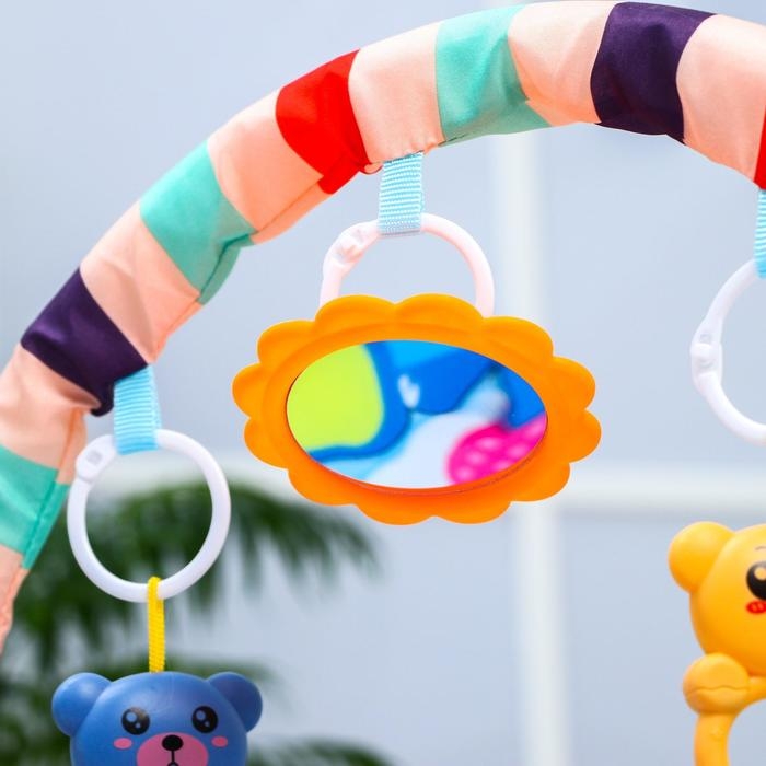 К дугекрепится 5 развивающих игрушек.