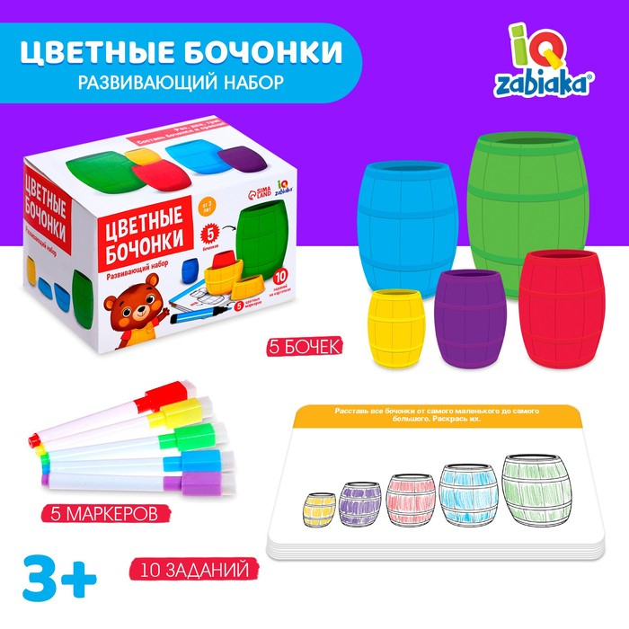 Развивающий набор «Цветные бочонки», по типу матрёшки, набор маркеров, карточки пиши-стирай