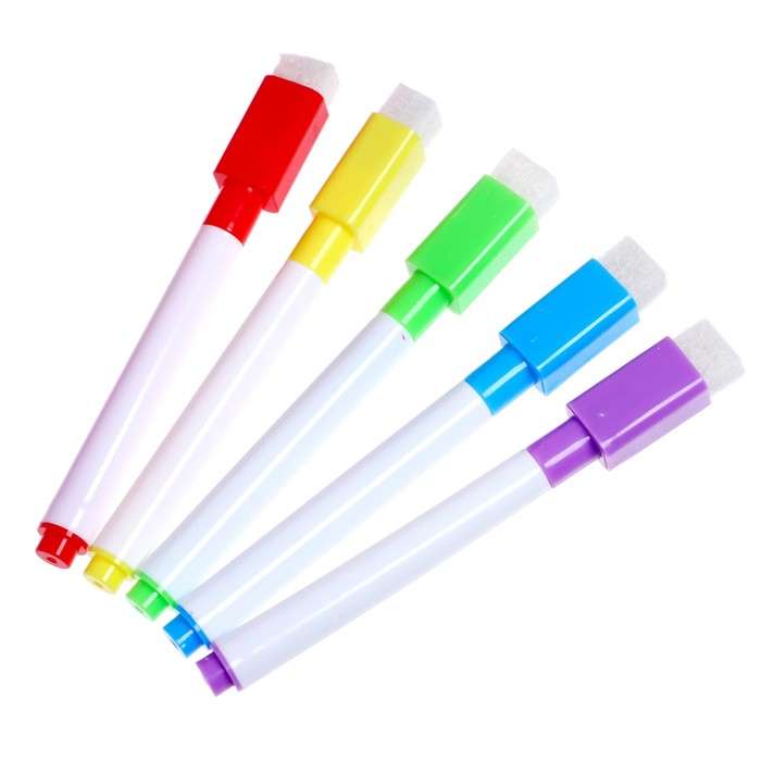 В комплекте есть маркеры на водной основе. С помощью них малыш раскрасит картинки. Они предназначены для многоразового использования.