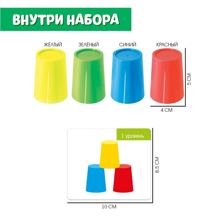 - Придумывайте свои задания, например, отсортировать стаканчики по количеству или цвету.