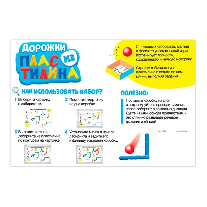 Развивающий набор «Дорожки из пластилина» поможет ребёнку в формате увлекательной игры потренировать ловкость, координацию и мелкую моторику. Стройте лабиринты из пластилина и ведите по ним мячик, выполняя задания.