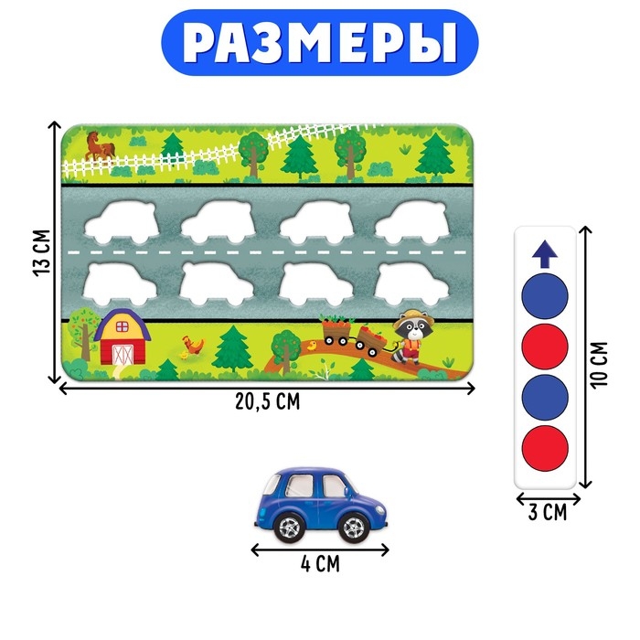 Развивающий набор «Куда едет машинка?» поможет малышам от 3 лет научиться различать лево и право, изучить основные цвета, потренировать логическое мышление и моторику.