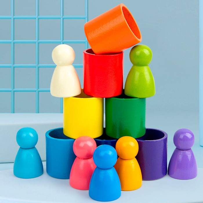 Обучающий набор позволит потренировать логическое мышление. Играя с человечками, малыш выучит цвета, научится сортировать предметы по форме и цветам.