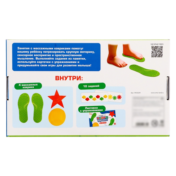 Развивающий набор «Нейродорожки» разработан для малышей от 3 лет. Занятия с массажными ковриками помогут вашему ребёнку потренировать крупную моторику, сенсорное восприятие и пространственное мышление.