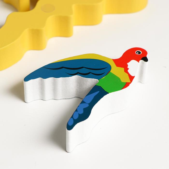 Фигурки пазла сделаны из прочного и экологичного материала — дерева — и покрыты безопасными для детского здоровья красками.