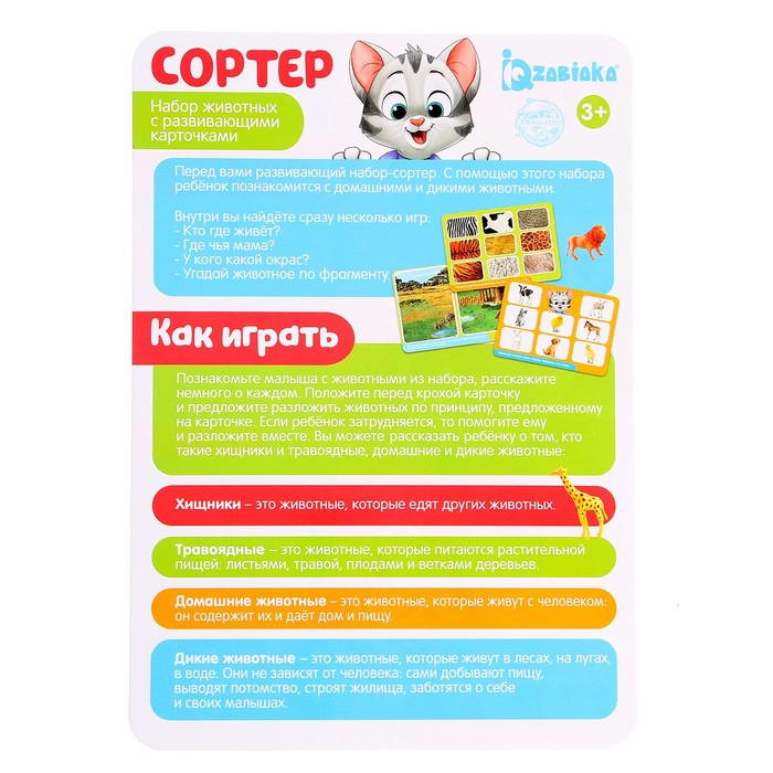 - Расскажите ребёнку, кто такие хищники и травоядные, домашние и дикие животные.