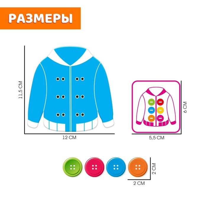 Развивающий набор «Пуговки» поможет малышу потренировать мелкую моторику и внимательность, а также научит ребёнка зашнуровывать обувь или элементы одежды.