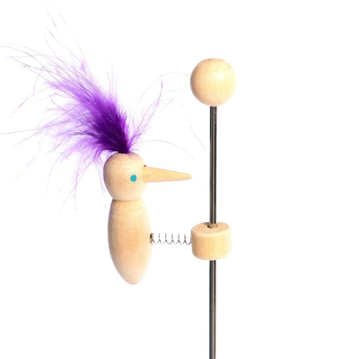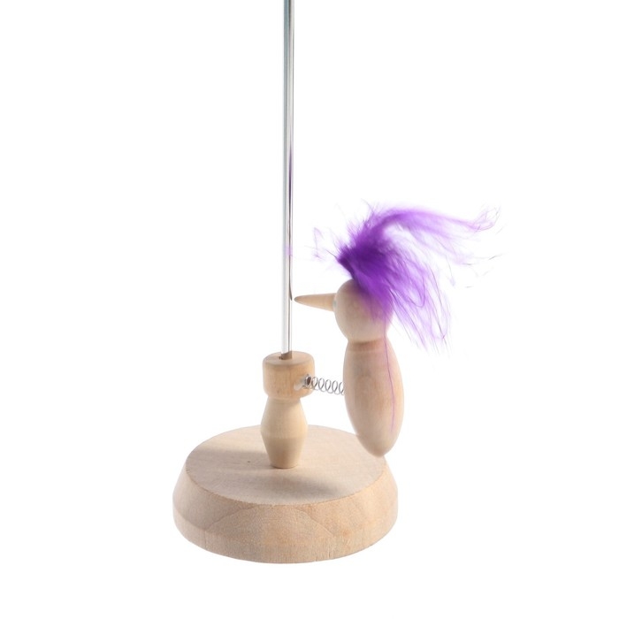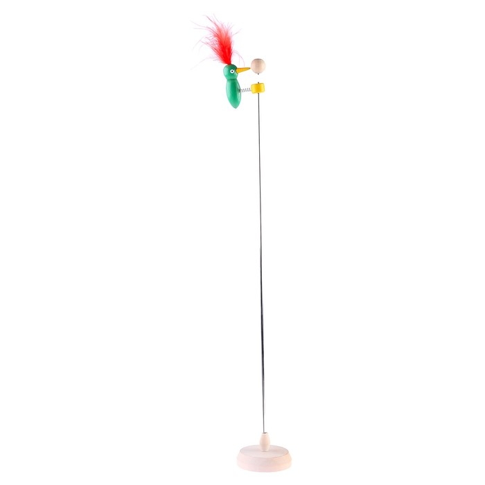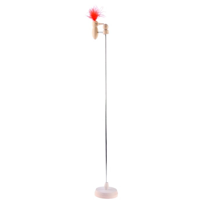 - Поднимите птичку вверх, оттяните её от основы и отпустите. После этого дятел устремится вниз, постукивая клювом по палочке и издавая звук «Д».
