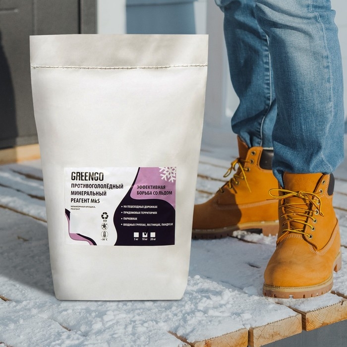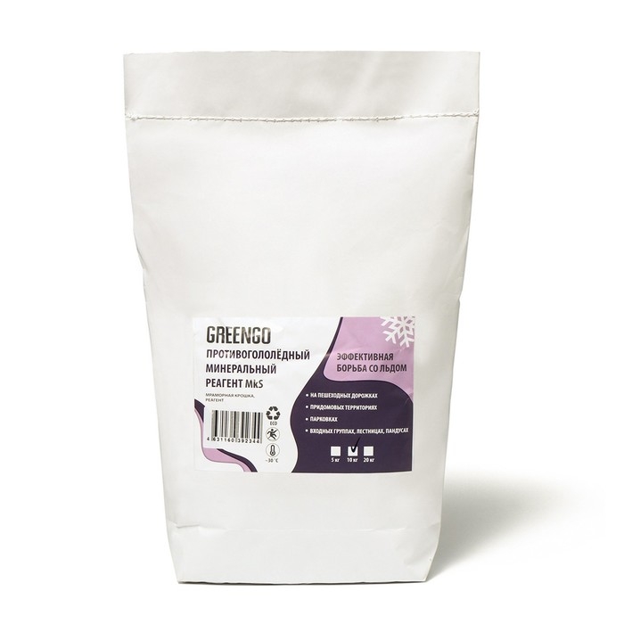 Реагент противогололёдный (мраморная крошка, галит, хлористый кальций), 5 кг, работает при —30 °C, Greengo