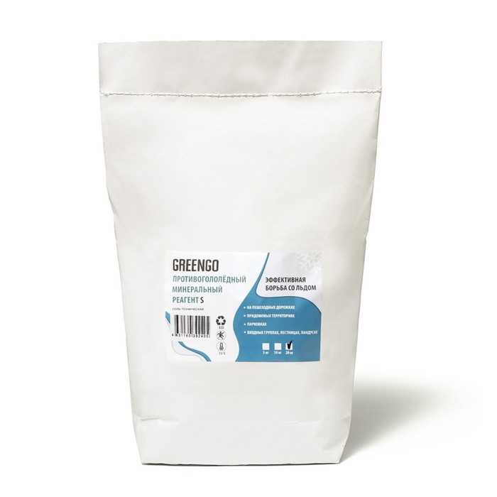 Реагент противогололёдный S (соль техническая), 20 кг, работает при —15 °C, в мешке, Greengo