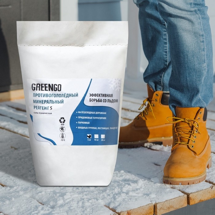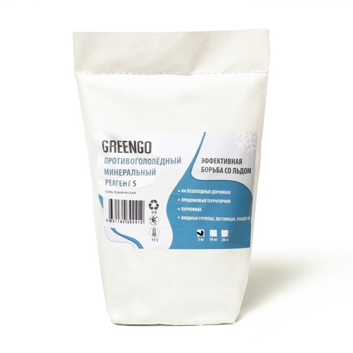 Реагент противогололёдный S (соль техническая), 5 кг, работает при —15 °C, Greengo