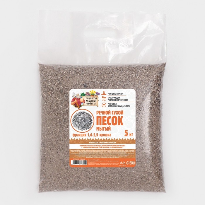 Речной песок "Рецепты дедушки Никиты", сухой, фр 1,6-2,5, крошка, 5 кг
