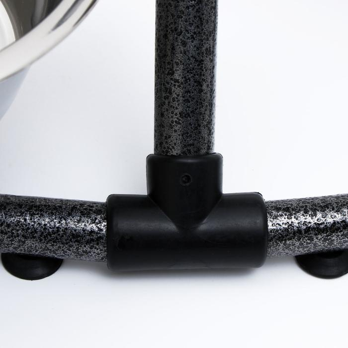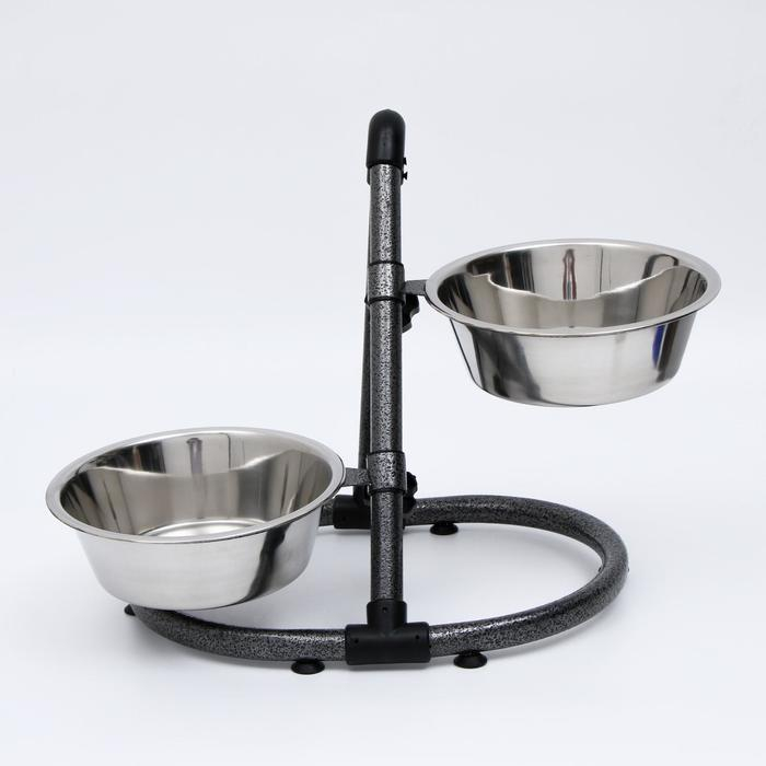 Стойка с 2-мя мисками для кормления сразу нескольких животных, это – идеальное решение для кормления щенков и собак подростков, живущих на одной территории. Качественные, практичные и функциональные миски для собак размещены на регулируемой подставке, которая будет расти вместе с вашими малышами. Винтовая кормушка убережёт помещение от загрязнения кормом и водой. Металлическая конструкция очень устойчивая, поэтому ее очень сложно сдвинуть или опрокинуть даже самым активным щенкам. Стойка и миски хорошо переносят обработку горячей водой, моющими и дезинфицирующими средствами.