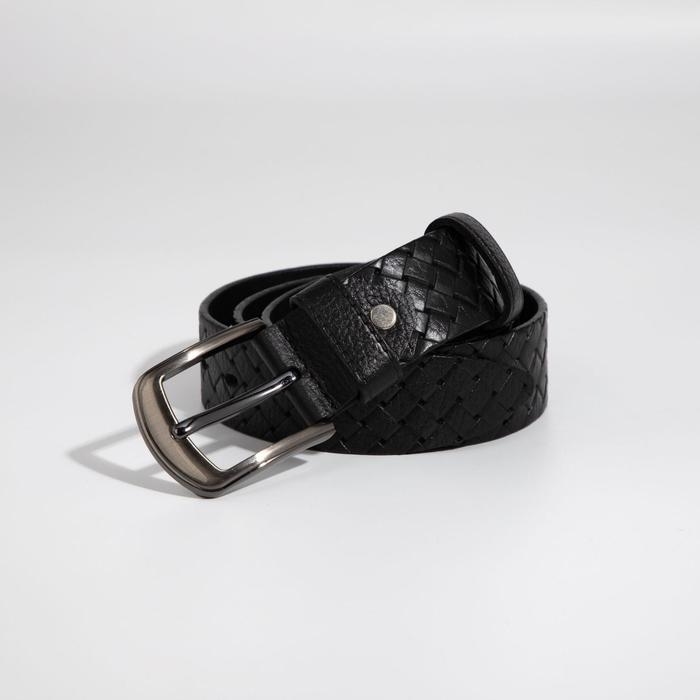 Ремень мужской, ширина 4 см, винт, плетёнка, пряжка металл, цвет чёрный