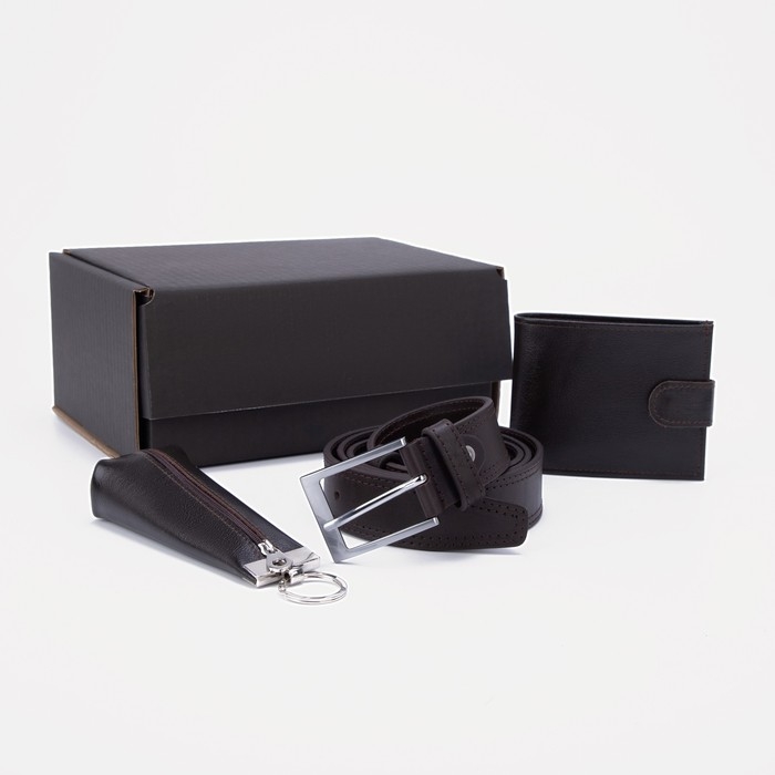 Ремень с винтом, портмоне, ключница, цвет коричневый