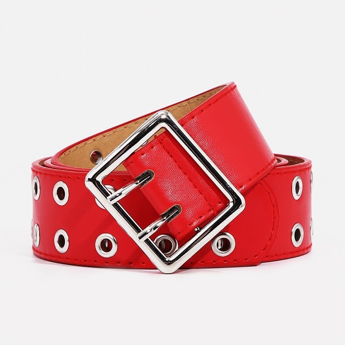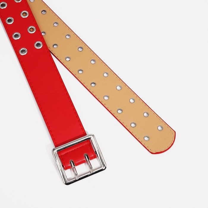 Ремень женский, ширина 4 см, люверсы, пряжка металл, цвет красный
