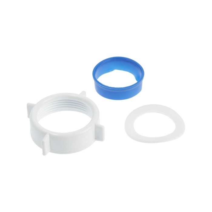 Ремонтный комплект для сифонов, гибких труб и шлангов, которые имеют присоединительный диаметр 40 мм или 1 1/2". Состоит из гайки, торцевой и конической прокладки.