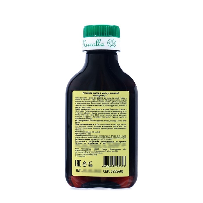Репейное масло Mirrolla с Мать-и-Мачехой, 100 мл