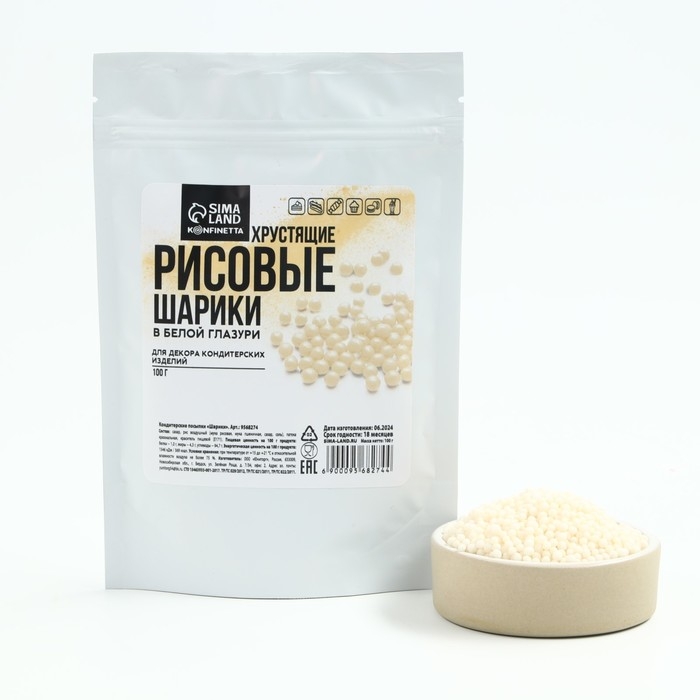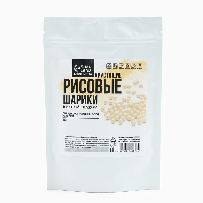 Рисовые шарики в белой глазури KONFINETTA, 100 г.