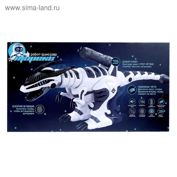 Робот «Тирекс» ― боевой динозавр с большой пушкой! Игрушка свободно передвигается вперёд, назад, влево и вправо, двигает хвостом, головой и передними лапками.