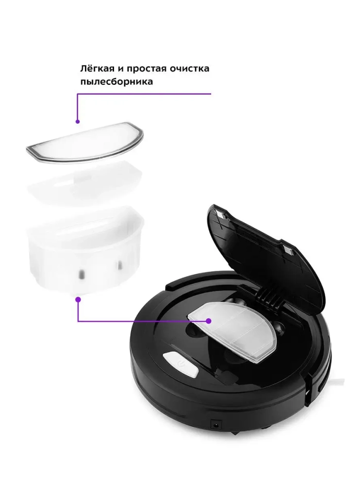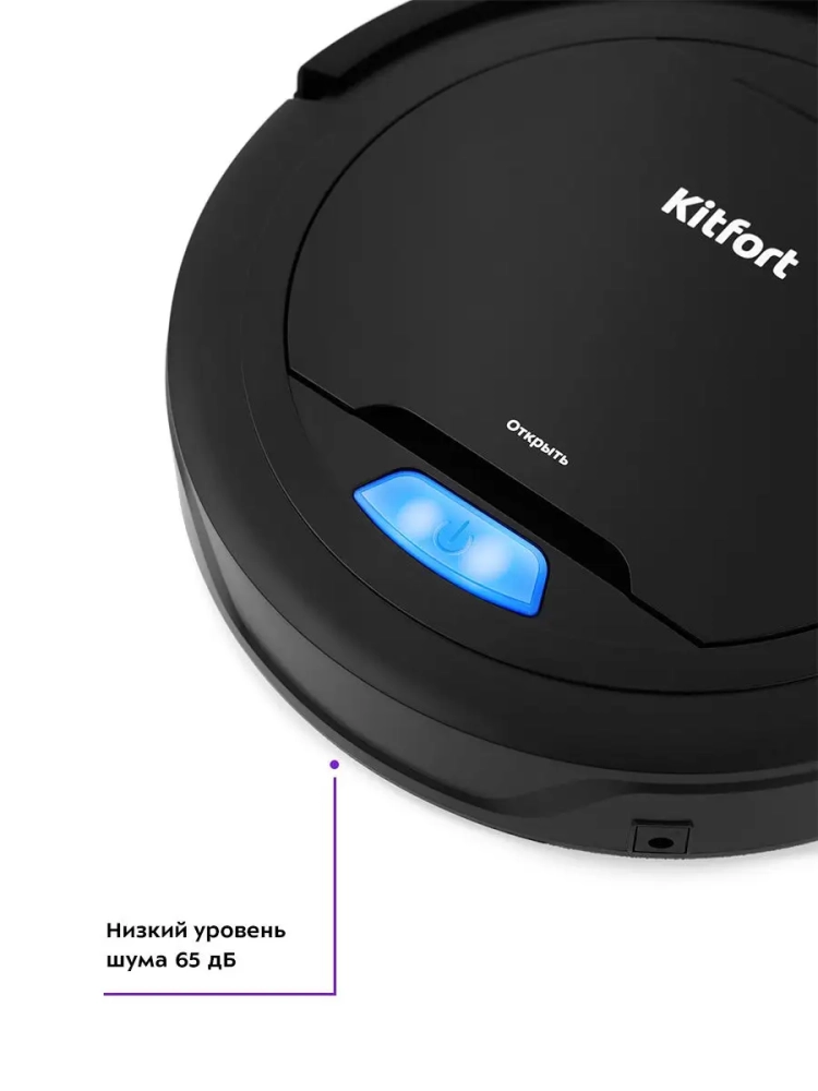 Робот-пылесос Kitfort КТ-562 компактен и прост в использовании. Для начала уборки вам нужно нажать единственную кнопку на корпусе пылесоса. Пылесос оснащен двумя боковыми щетками. Он подходит для уборки деревянных полов, ламината, керамической плитки, кафеля, линолеума, для сухой уборки ковровых покрытий с не очень длинным ворсом, а также для влажной уборки гладких покрытий. Вы можете провести влажную уборку, прикрепив к пылесосу модуль с влажной тряпкой. Тряпка большой площади автоматически увлажняется во время уборки встроенной электрической помпой, то есть пылесос дозирует необходимое количество воды, подаваемое на тряпку. В моющий модуль установлен пылесборник. Робот сначала засасывает пыль и мусор в пылесборник, а затем увлажняет пол тряпкой. Пылесос убирает в автоматическом режиме, перемещаясь зигзагом и вдоль препятствий. В местах с сильным загрязнением робот включает режим уборки по спирали.