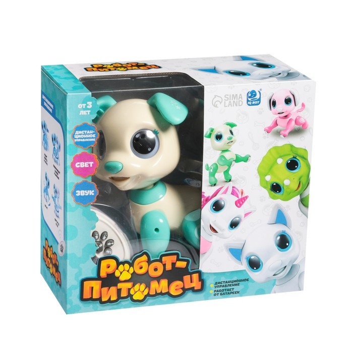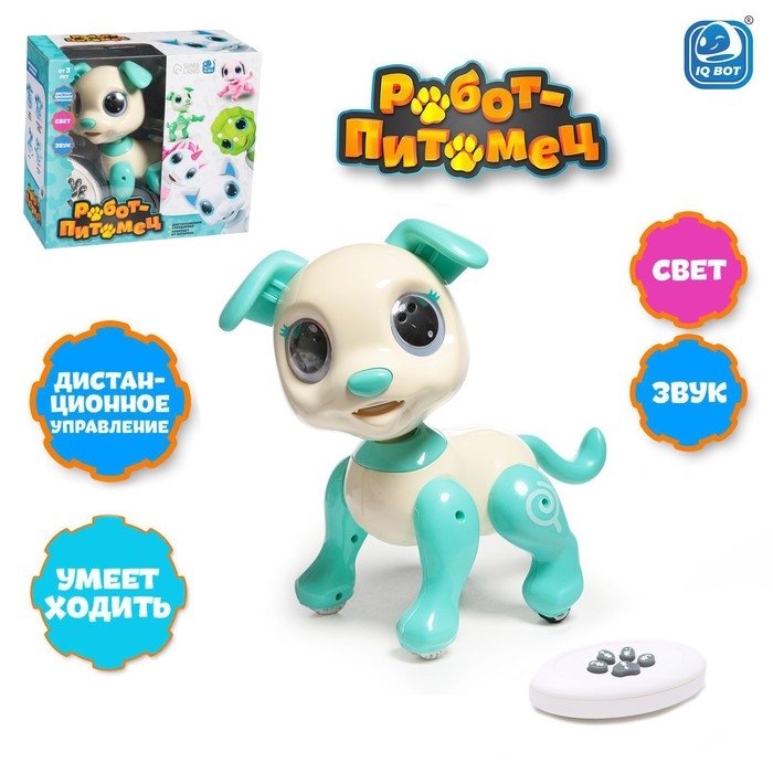 Робот собака «Питомец» IQ BOT, на пульте управления, интерактивный: звук, свет, на батарейках, голубой