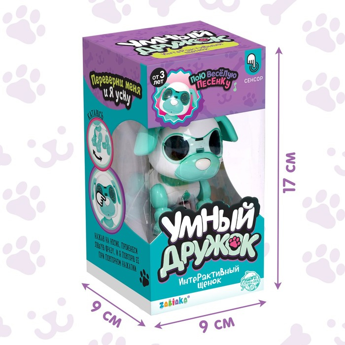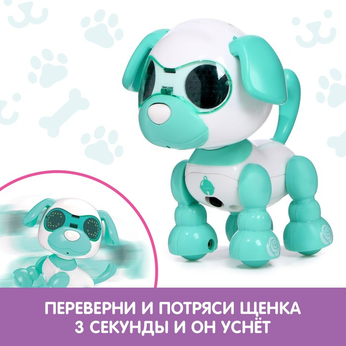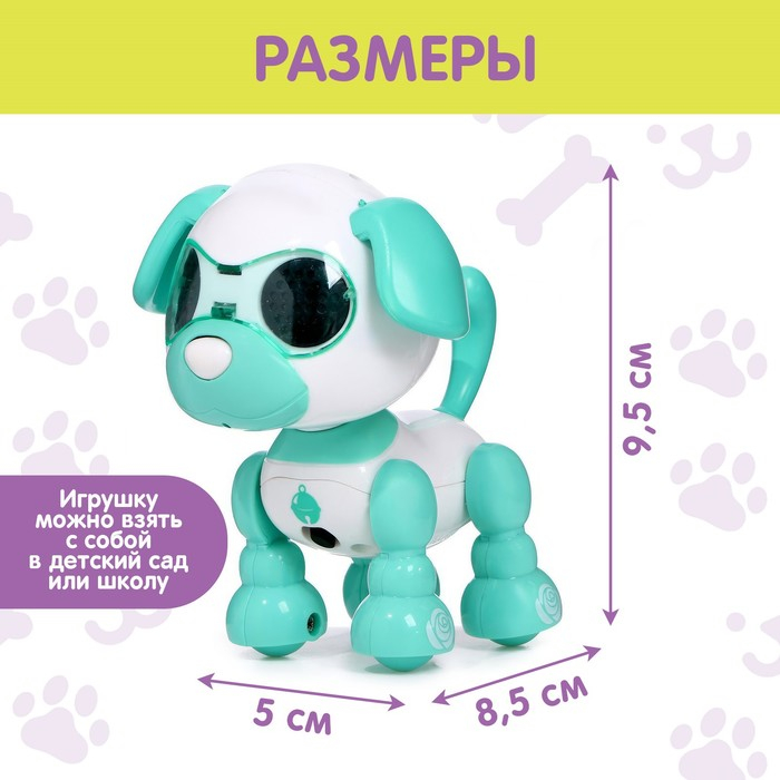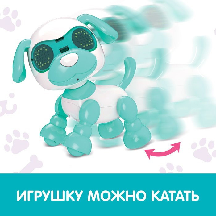 Робот собака «Умный дружок», интерактивный: с записью звуков, свет, звук, сенсорный, музыкальный, на батарейках, бирюзовый