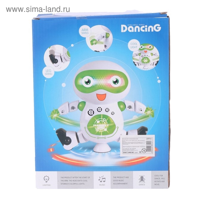 Робот «Танцор» обладает подвижными конечностями и может вращаться на 360°. В игрушку встроены световые и звуковые эффекты. Робот воспроизводит весёлую мелодию, под которую ездит в разные стороны и кружится.