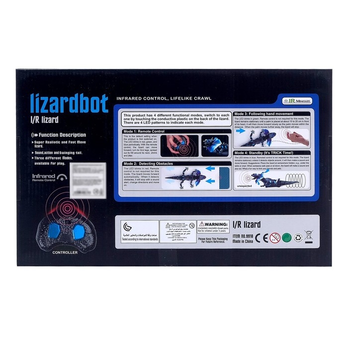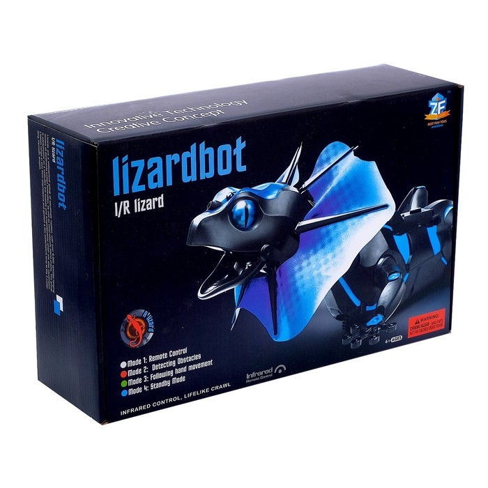 Когда световые индикаторы красные, игрушка движется самостоятельно. При обнаружении препятствия ящер кричит и автоматически обходит его.