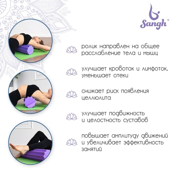 Ролик массажный Sangh, 45х15 см, цвет фиолетовый