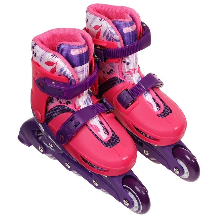 Ролики для обуви раздвижные ONLYTOP, светящиеся колёса РU 70 мм, ABEC 5, цвет розовый