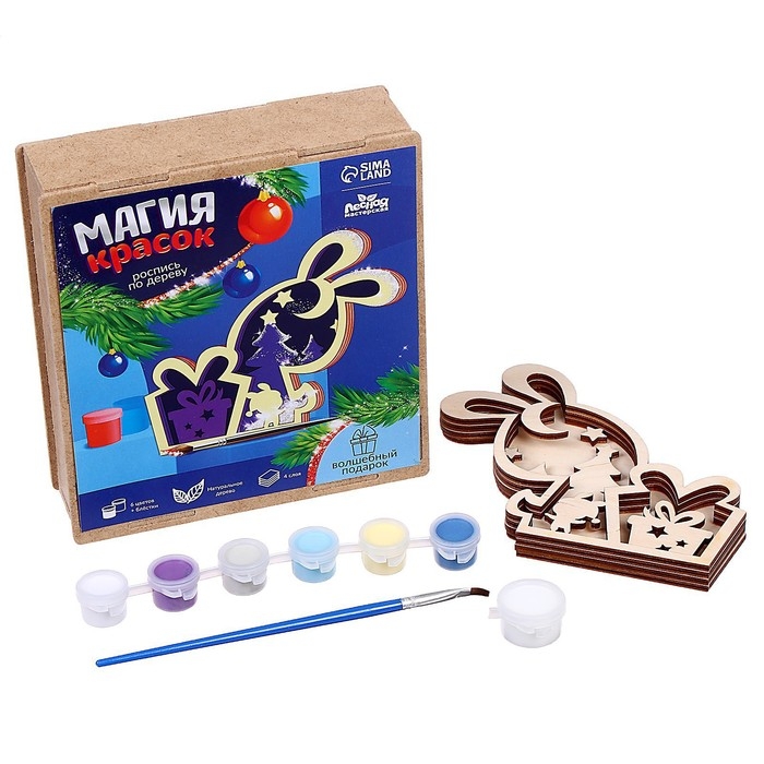 Роспись по дереву «Зайка», новогодний набор для творчества
