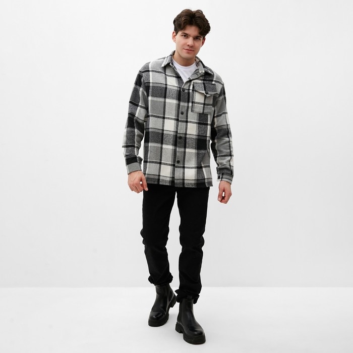 Рубашка мужская в клетку MIST, размер 46, черный/белый